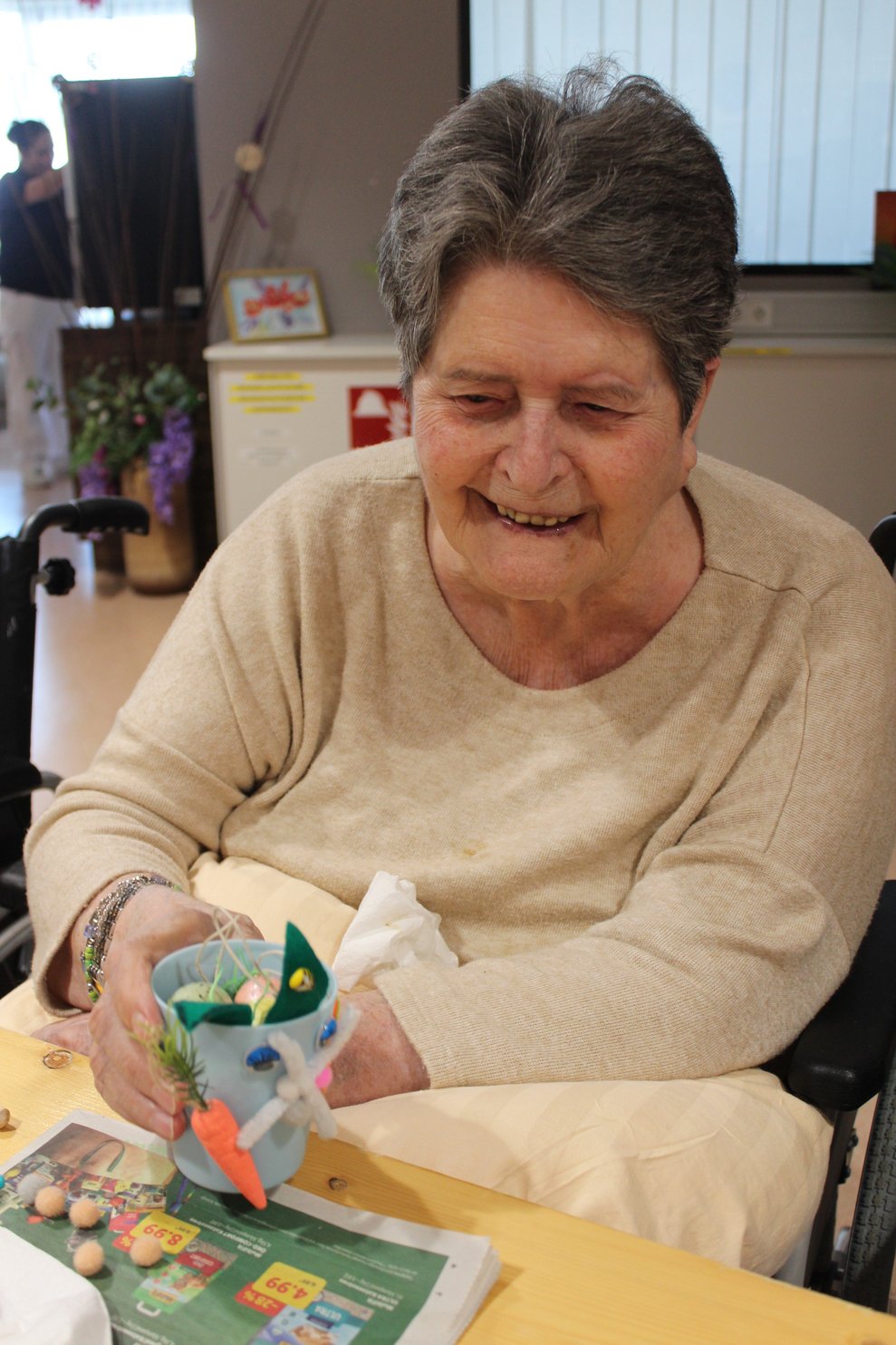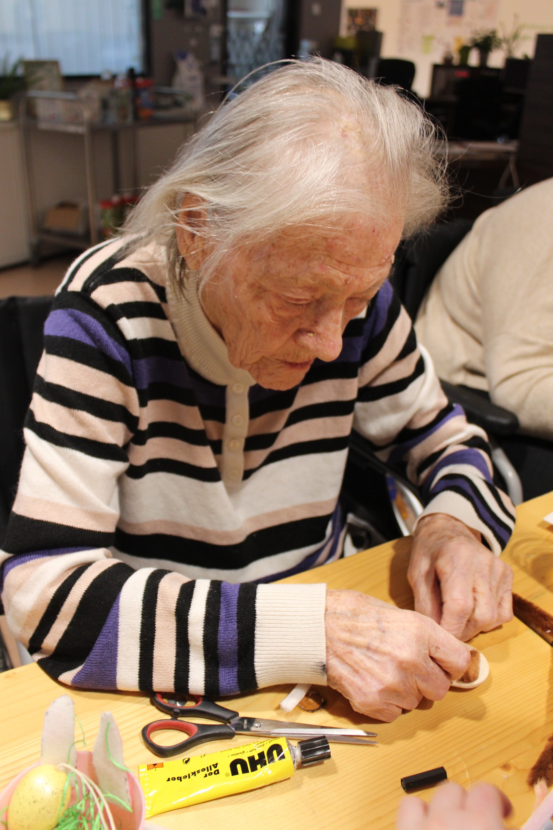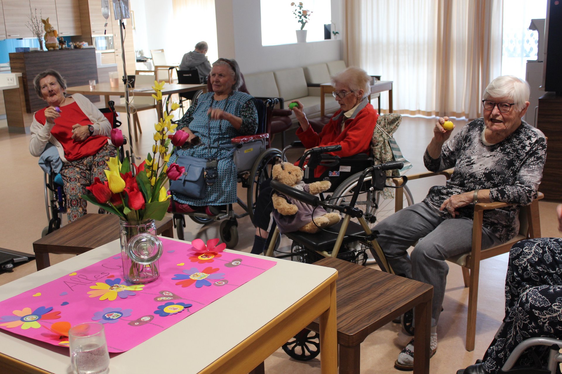 Der Frühling hält Einzug in unser Pflege- und Betreuungszentrum – und mit ihm die Vorfreude auf das bevorstehende Osterfest. In den vergangenen Tagen wurde bei uns eifrig gebastelt, gelacht und gemeinsam gestaltet. Ob in der Aktivierungsgruppe, wo Ostern zum lebendigen Thema wurde, beim Basteln auf der Psychosozialen Betreuung oder beim kreativen Miteinander mit Schülerinnen und Schülern der Mittelschule Pelzgasse Baden: Überall war die Freude am Tun spürbar. Die entstandenen Werke spiegeln nicht nur Kreativität und Engagement wider, sondern auch das wertvolle Miteinander zwischen den Generationen. Lassen Sie sich von unseren Fotos einen Eindruck dieser besonderen Momente vermitteln.
