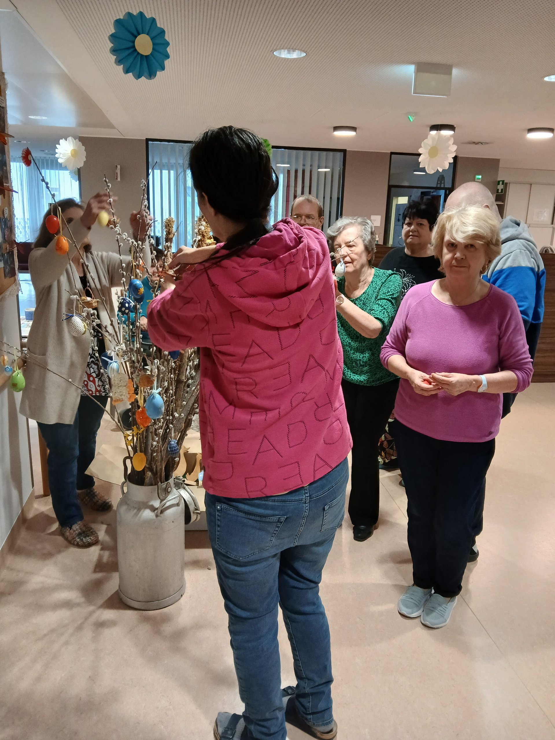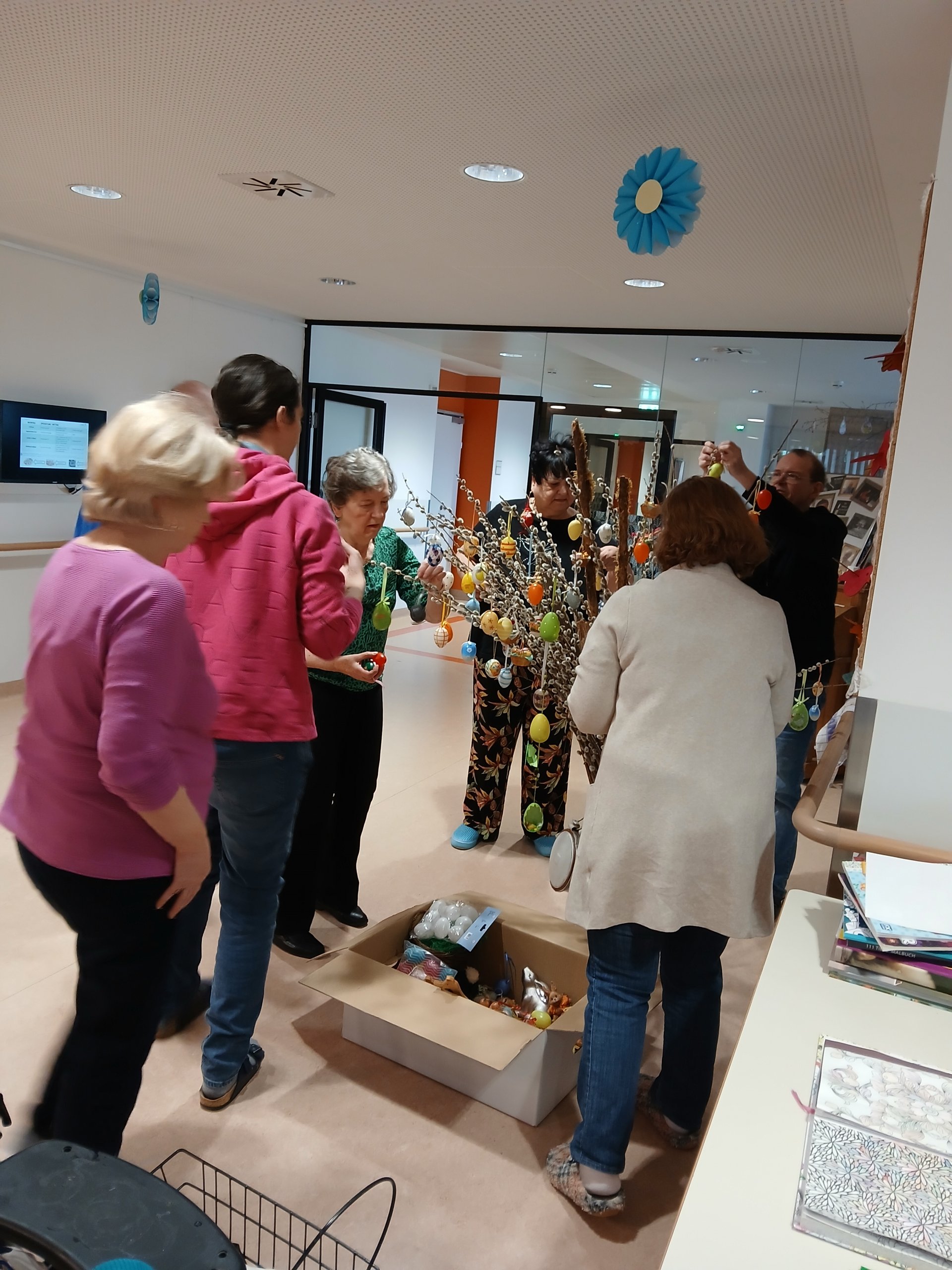 Das gemeinsame Dekorieren brachte nicht nur Farbe ins Haus, sondern auch viele schöne Gespräche, Erinnerungen an vergangene Osterfeste und vor allem viel Freude beim gemeinsamen Tun.